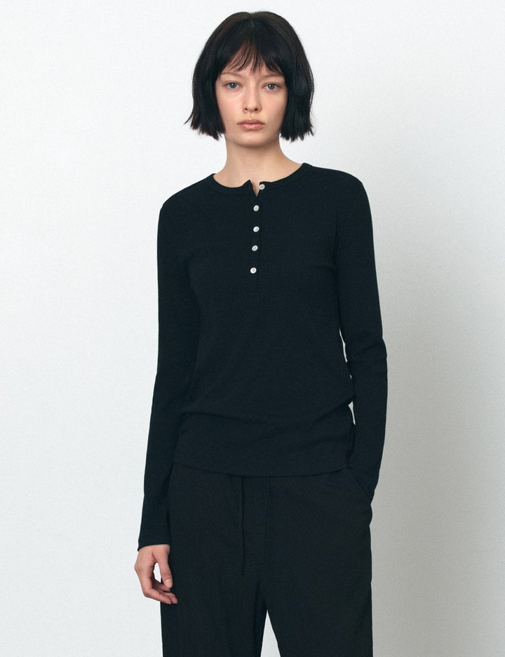자연스러운 슬러브 텍스처가 돋보이는 헨리넥 티셔츠입니다.