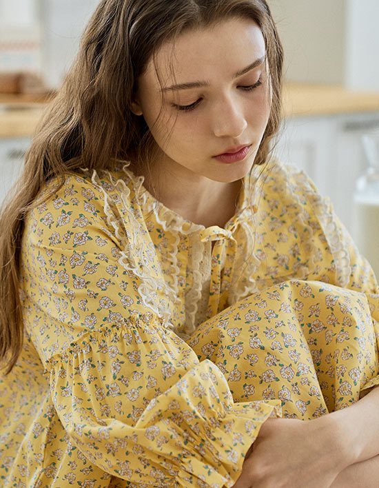 [울랄라 파자마] 루미나 7부 원피스 옐로우 (40수) FREE