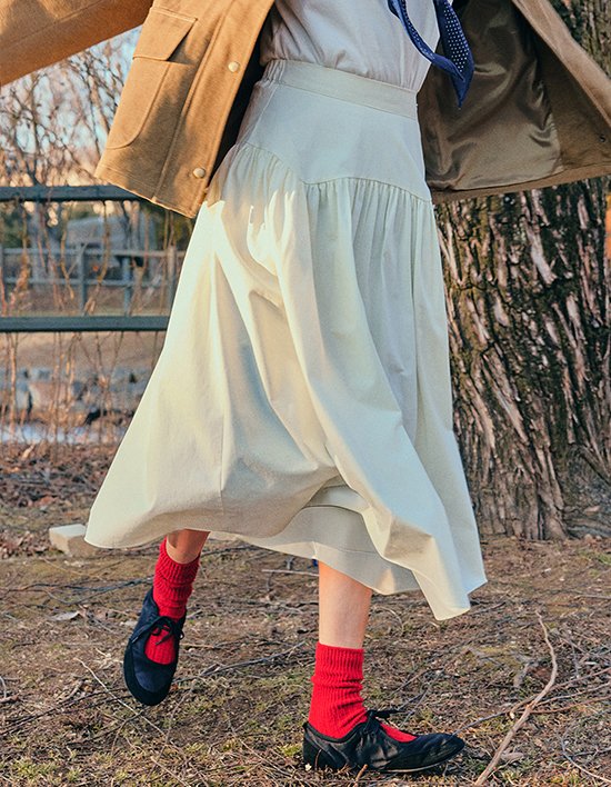 [코스에그] 셔링 플레어 롱 스커트_EFSSK189