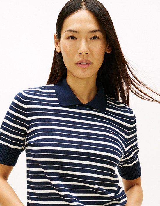Fit 레귤러 핏부드러운 코튼 원사로 완성된 저지 칼라형 반팔 스웨터로, 편안한 착용감과 깔끔한 외관이 특징입니다.변형