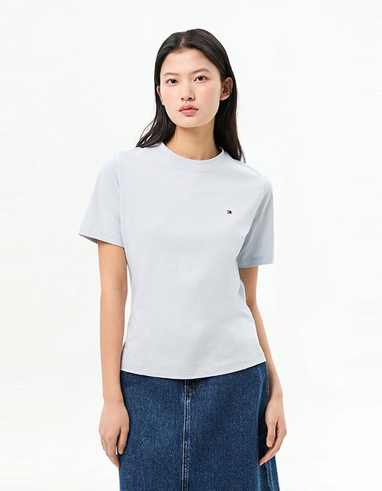 Fit 레귤러 핏부드러운 코튼 저지 소재로 제작되어 편안한 착용감을 선사하는 크루넥 반팔 티셔츠입니다.가슴 부분의 플래그
