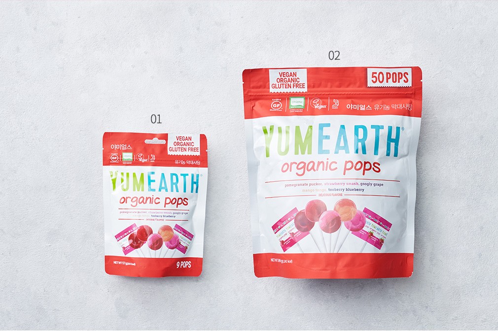 01~02. 유기농 과일 막대사탕 ・선택 가이드 : ①파우치(57g), ②패밀리팩(349g) 중 선택하세요.