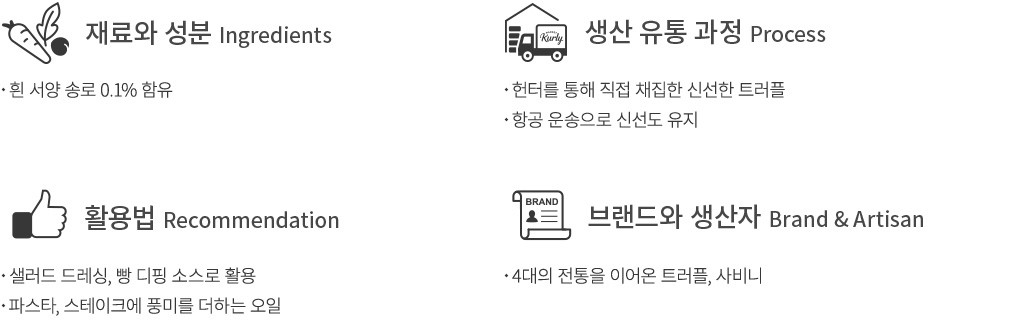 활용팁 ・트러플의 향을 잘 유지하려면 너무 강한 열에 조리하는 것은 피해주세요.