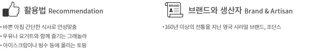 - 크리스피 그래놀라 초코: 대두 함유 / 밀, 호밀, 견과류, 우유 혼입 가능 - 후르츠&너츠 뮤즐리: 밀 함유 / 호밀, 견과류 혼입 가능 - 크리스피 그래놀라 딸기: 밀, 호밀, 견과류 혼입 가능 - 베리 그래놀라: 밀, 보리, 호밀, 견과류 혼입 가능