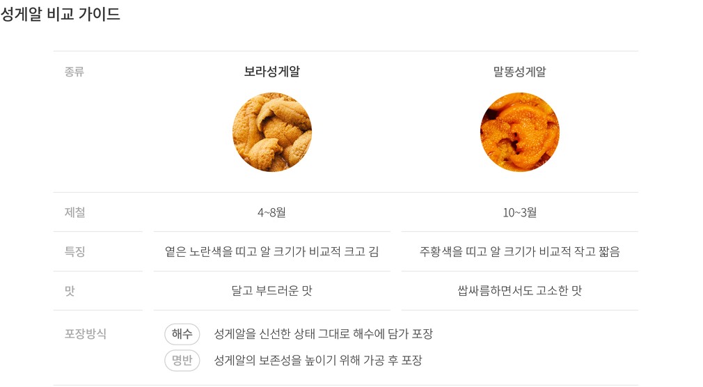 무더위 입맛 잡아줄 보라성게 보라성게는 초여름부터 가을까지 제철로 가장 맛이 좋아요. 가시가 굵고 뾰족한 것이 특징인데요. 보기만 해도 군침 도는 노란빛의 알은 아이스크림을 먹는 듯한 부드러운 질감과 입안에 여운을 남기는 쌉사름하면서 담백하고 고소한 맛이 일품입니다. 더욱이 필수 아미노산과 단백질, 비타민 함량이 해삼보다 높아 ‘바다에서 나는 쓸개’라 불리는 식재료로 인기가 많습니다.