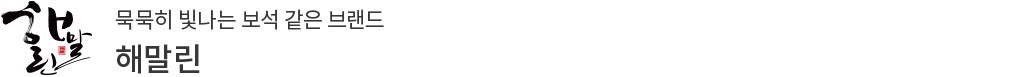 농어민의 자부심을 담은 정성과 노력 ㈜바다누리에서 운영하는 브랜드, 해말린은 그 어떤 인위적 가공 없이 오직 자연을 통해서만 식품을 빚는 참다운 브랜드입니다. 남해, 한산도, 군산 등등 천혜의 자연을 품은 환경에서 건전복, 건홍합, 오징어채, 황태, 다시마 말이, 멸치 등등 다채로운 먹거리를 소량 생산합니다. 산과 바다에서 구슬땀과 함께 길어 올린 먹거리들은 전통방식을 거쳐 소비자들 곁을 찾아오지요. 30여 년 동안 손수 쥐치를 잡아 극소량의 설탕과 소금으로만 맛을 내는 장인의 고집, 40년 가까이 물잡이만 해온 기장 해녀 할머니의 정성, 이러한 참다운 마음들이 모여 해말린을 만듭니다. 보다 건강하고, 보다 맛있게 먹을 수 있는 재료를 찾는 것은 해말린의 변하지 않는 약속입니다. 백화점, 대형마트 등 온·오프라인 전체를 아우르며 뛰어난 품질로 사랑받는 해말린. 그 어떤 가공 없이 오직 자연을 통해서만 식품을 채집하고, 손질하고, 말리고, 담아 오며 프리미엄 식품의 새로운 판로를 개척합니다.
