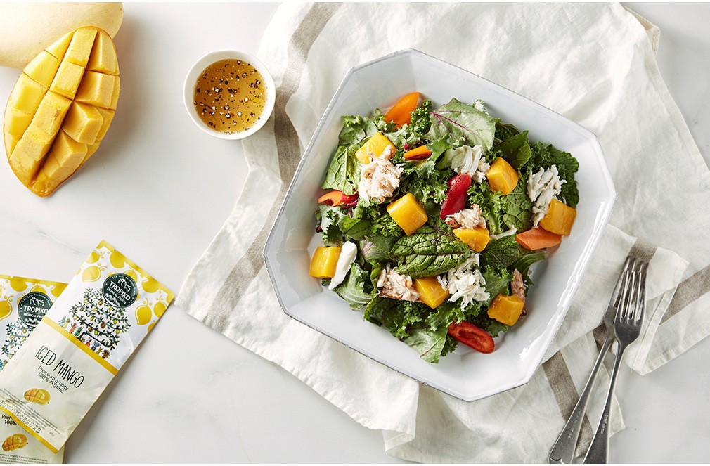 이렇게 활용하세요 ・평소 먹는 샐러드가 왠지 심심하다면 트로피코 아이스 망고를 잘라 샐러드 토핑으로 곁들여보세요. 먹음직스러운 망고 샐러드 한 접시가 완성됩니다.