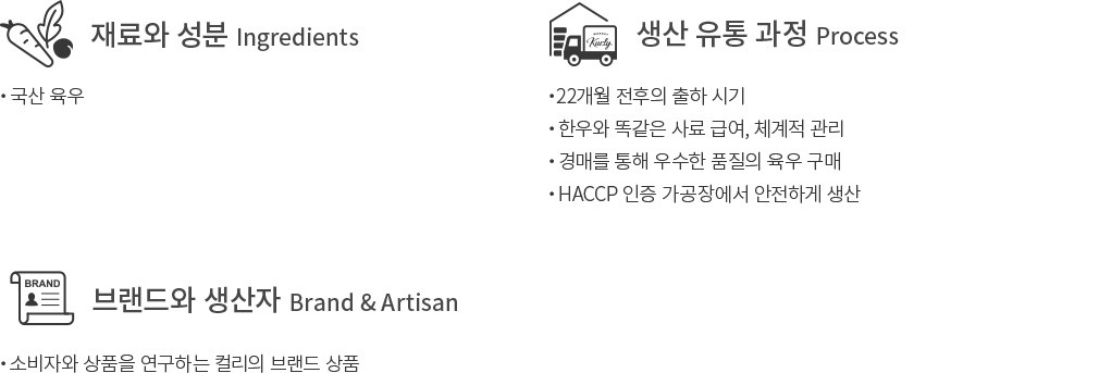 컬리는 고민했습니다. '국내산 소고기를 특별한 날이 아닌 일상에서도, 합리적인 가격으로 즐길 순 없을까?' 그 해답을 위해 컬리는 직접 기획한 상품, '일상味소' 육우를 선보입니다. 건강한 단백질이 함유된 사료를 먹고, 좋은 환경에서 체계적인 관리를 받으며 자란 우리 소랍니다. 출하시기가 22개월 전후로 짧기 때문에 육질이 연하고 맛이 담백해요. 합리적인 가격부터, 컬리 내부 블라인드 테스트에서도 높은 점수를 받은 맛까지. 부담 없이 자주 즐기기 좋은 소고기의 조건을 모두 갖췄습니다.