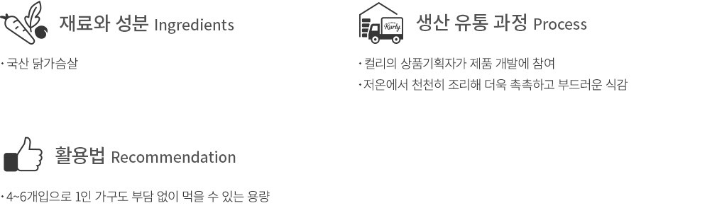 ・테이스팅 노트 : 살짝 익히기만 해도 부드러우면서 쫄깃한 육질, 촉촉한 육즙을 느낄 수 있어요. 후추와 소금 등으로 간이 적당히 되어 있어 따로 간을 더하지 않아도 맛있습니다.