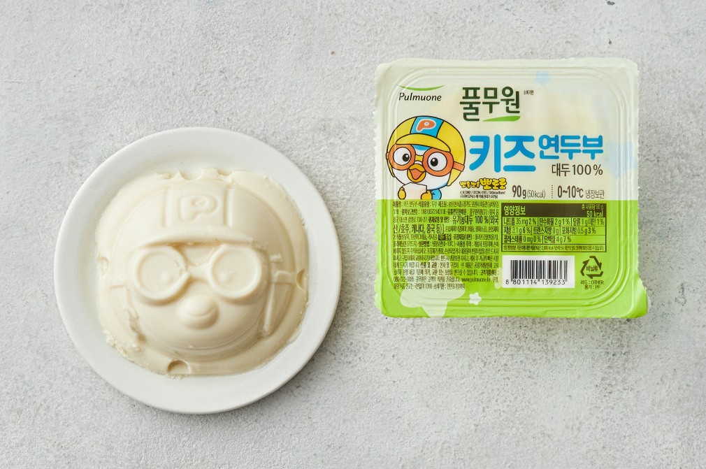 귀여운 뽀로로 얼굴 모양의 유기농 대두로 만든 연두부