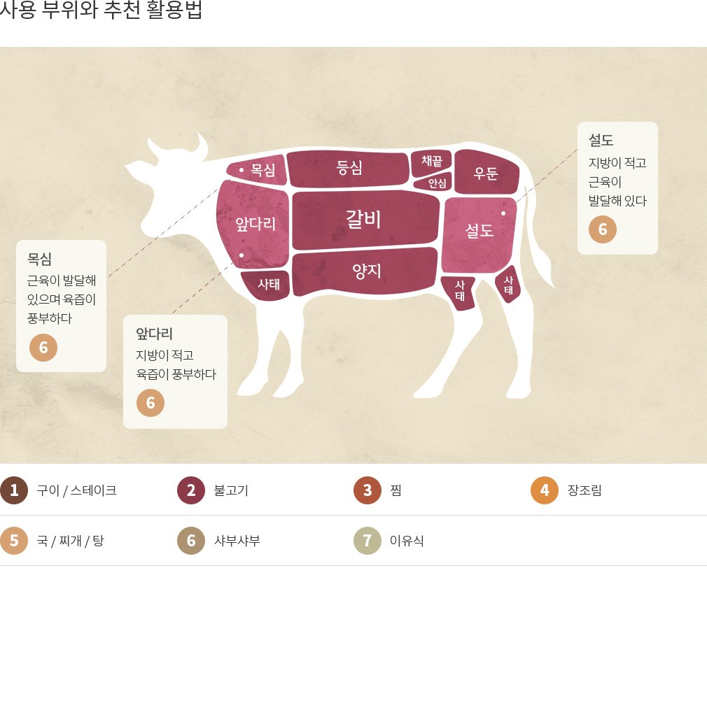 정육 상품의 특성상 중량은 5%내외의 차이가 발생할 수 있습니다. 비닐 포장 등에 의해 산소가 공급되지 않아 간혹 검붉게 변하는 현상이 발생할 수 있으나, 산소와 접촉하면 선홍색으로 돌아오는 점 안내드립니다. 개체에 따라 지방과 살코기 비율이 조금씩 상이할 수 있는 점 참고 부탁드립니다.