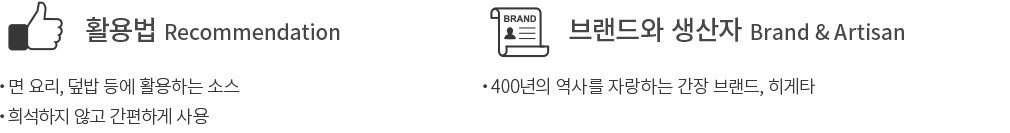 400년의 역사를 가진 히게타는 변하지 않는 맛과 향으로 그 명성을 이어오고 있어요. 이번에 소개할 제품은 히게타의 노하우가 오롯이 담긴 소바쯔유입니다. 건조 가다랑어포, 건조 물치다래포를 잘 우려내, 간장과 알맞게 배합하여 한 병에 담았어요. 맑고 투명한 수색에, 은은하게 감도는 감칠맛이 제 역할을 톡톡히 해낸답니다. 면 요리는 물론, 덮밥, 달걀 말이 등 다양한 요리에 활용해 보세요. 재료 본연의 맛을 살리면서도 깊은 풍미를 더해줄 거예요.