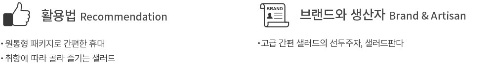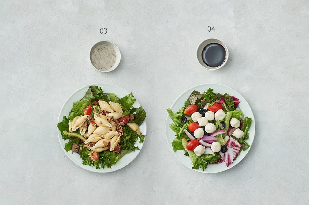 ・채소 : 혼합채소(크리스피아노, 카이피라, 이자벨, 적근대, 라디치오), 토마토, 오이, 적양파