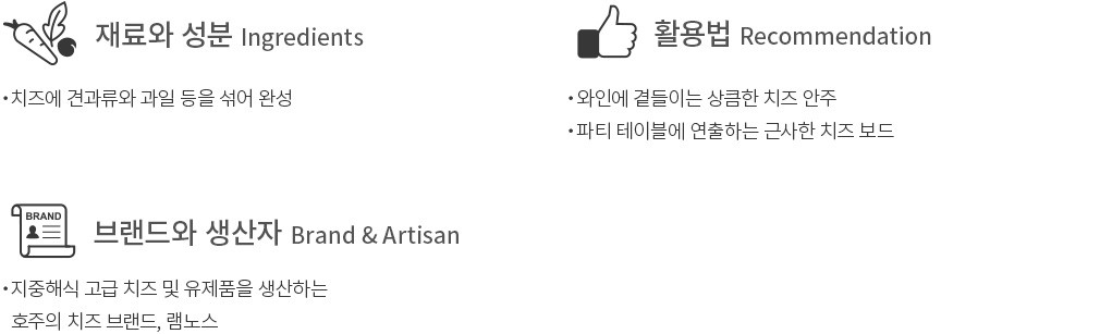 - 갈릭차이브 치즈 : 우유 함유. 우유, 글루텐, 땅콩을 사용한 제품과 같은 시설에서 제조 - 후르츠넛 치즈 : 우유, 땅콩 함유. 우유, 트리넛, 땅콩, 이산화황을 사용한 제품과 같은 시설에서 제조 - 메론망고 치즈 : 우유 함유. 우유, 트리넛, 땅콩, 이산화황을 사용한 제품과 같은 시설에서 제조 - 살구아몬드 치즈 : 우유 함유. 우유, 트리넛, 땅콩, 이산화황을 사용한 제품과 같은 시설에서 제조 - 블루베리 치즈 : 우유, 땅콩 함유. 우유, 땅콩을 사용한 제품과 같은 시설에서 제조