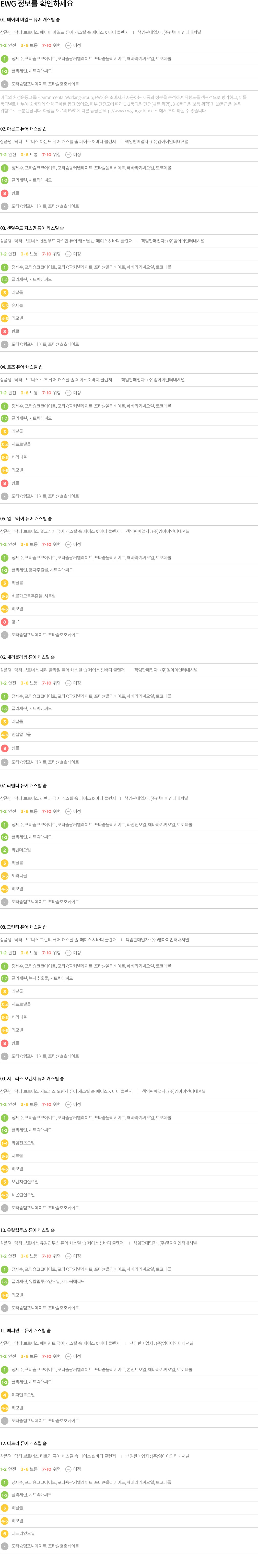 컬리는 EWG로부터 보통, 위험 등급을 받은 성분이라 하더라도 숨기지 않고 정직하게 공개합니다. 더불어 우려되는 성분에 대한 정보를 함께 제공해 드리오니 구입 전 반드시 확인해 주세요.