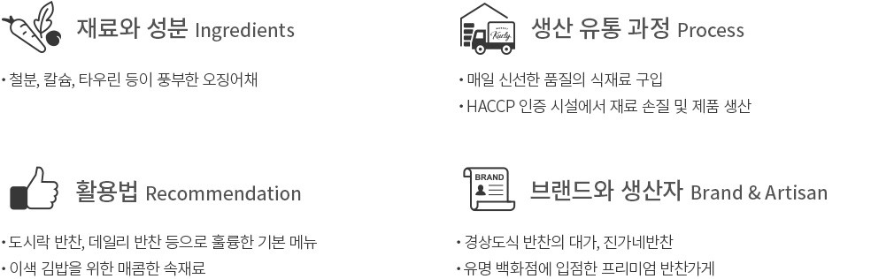 진가네반찬이 중요하게 생각하는 가치는 '정갈, 정성, 정직'이에요. 다수의 반찬가게가 한식뿐만 아니라 서양식, 퓨전식 등을 함께 선보이는 것과 달리 진가네는 오로지 한식에만 집중합니다. 김치, 장아찌, 밑반찬, 전, 조림, 볶음 등 하나같이 따뜻한 밥과 함께 먹고 싶은 것들이에요. 컬리에서는 숙성될수록 맛이 차오르는 김치와 장아찌를 비롯, 재료 하나하나의 특징이 드러나는 기본 밑반찬을 만나보실 수 있습니다.