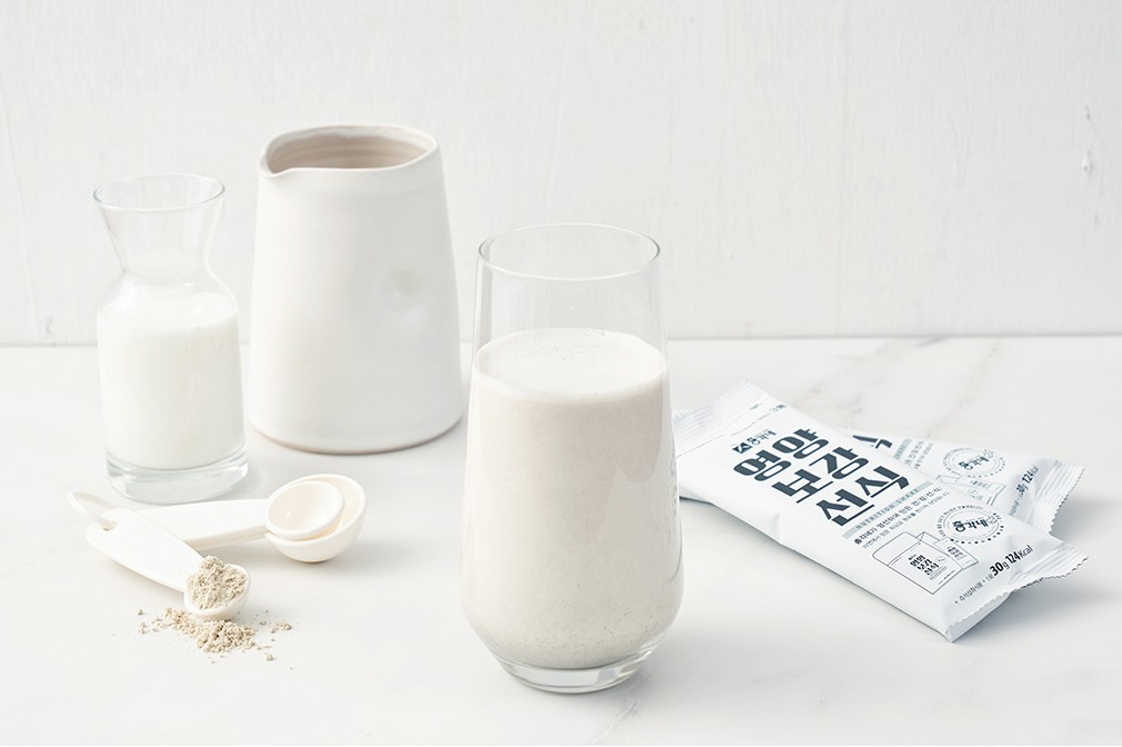 고소하고 부드럽게, 속이 편한 선식 한 잔 선식은 원래 불가에서 참선할 때 먹던 음식이라고 해요. 짐이 되지 않도록 무게가 가벼우며, 위에 부담이 적어 정신이 흩어지지 않도록 돕던 건강식이 바로 선식인데요. 7가지 곡식을 섞어 만들었던 데에서 유래했기 때문에 지금도 대부분의 선식에는 다양한 곡식이 사용됩니다. 총각네 또한 국산 현미와 보리, 옥수수와 흑미 등의 곡식을 베이스로 선식을 만들었어요. 여기에 해조칼슘, 멸치, 유산균 분말, 검정콩, 아몬드, 호두, 다시마, 클로렐라 등 33가지 재료를 넣었죠. 그래서 총각네의 영양보강선식은 탄수화물과 단백질, 식이섬유, 비타민을 골고루 함유하고 있습니다.