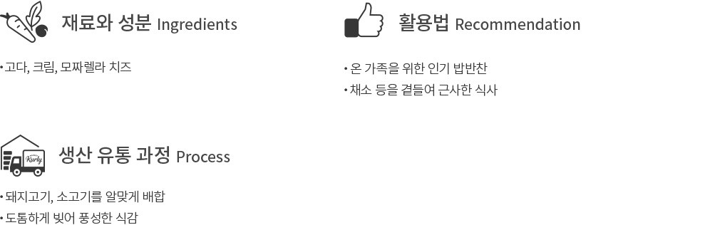 - 냉동 (종이포장) - 택배배송은 에코 포장이 스티로폼으로 대체됩니다.