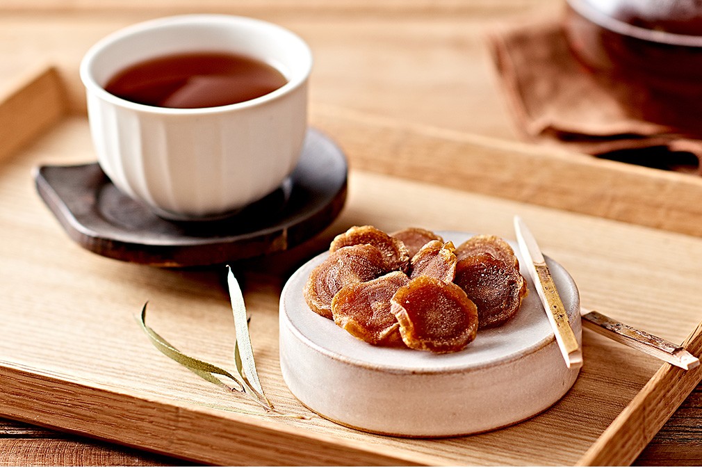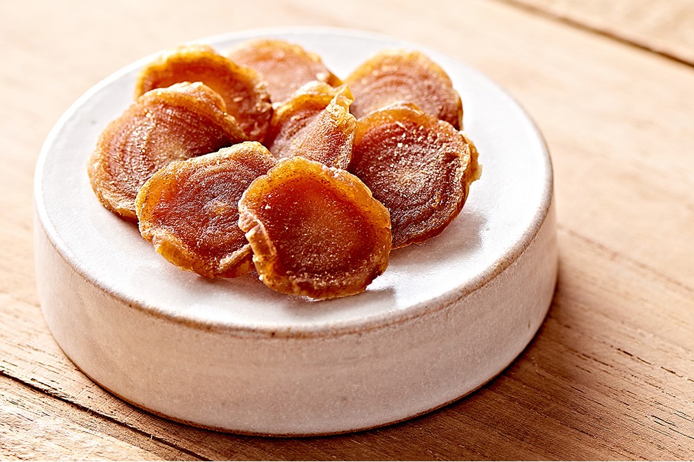 영양과 식감, 맛을 모두 갖춘 홍삼 절편 6년근 김정환 홍삼을 당침액에 담가두면 달콤함이 홍삼의 속까지 잘 스며들죠. 자체 개발한 정과 제조기술은 홍삼 본연의 영양과 향, 맛을 그대로 지켜냅니다. 6년근 홍삼으로 만들어지기에 향이 유달리 진하고 식감이 좋은 것도 장점이에요. 사양벌꿀이 들어가 의아해하시는 분도 계실 텐데요. 김정환 홍삼은 홍삼의 영양을 보다 합리적으로 전하고자, 고품질의 사양벌꿀만을 엄선해 사용합니다.