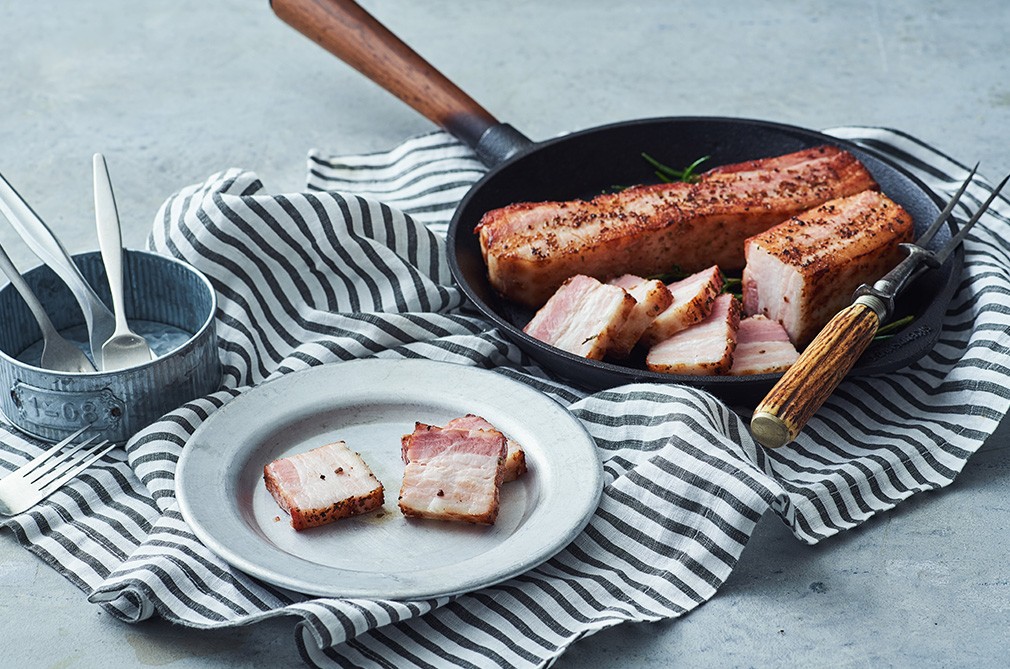 참나무 훈연으로 풍미와 향을 더한 통베이컨