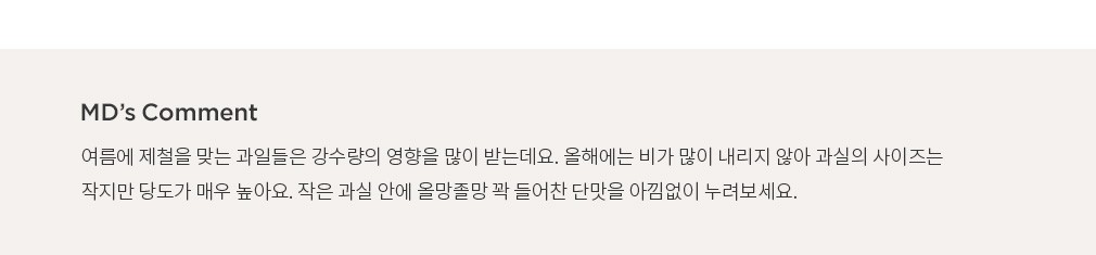 상품특성상 3%내외의 중량차이가 있을 수 있습니다. 신선식품 특성상 원물마다 크기 및 형태가 일정하지 않을 수 있습니다. 두 군데 이상의 산지 운영으로 패키지가 상이할 수 있습니다. 다만 중량과 크기는 모두 동일한 점 구매에 참고부탁드립니다
