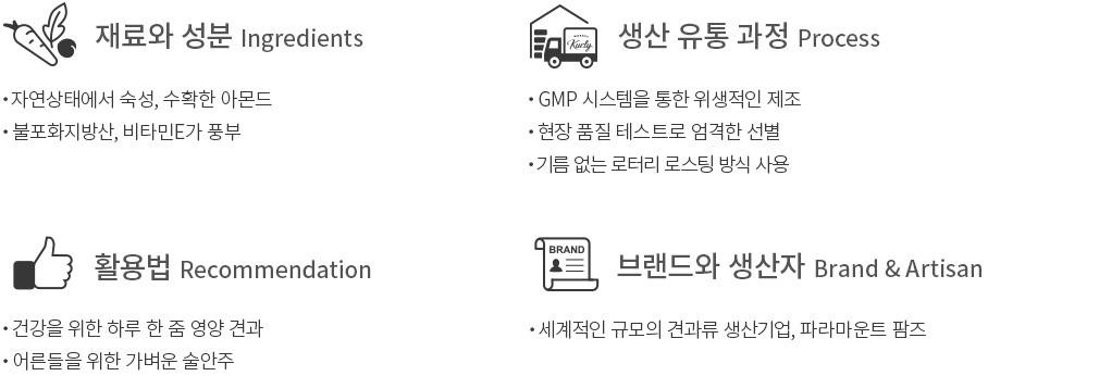 ・ 특징 : 아몬드 본연의 진한 고소함이 일품이에요.