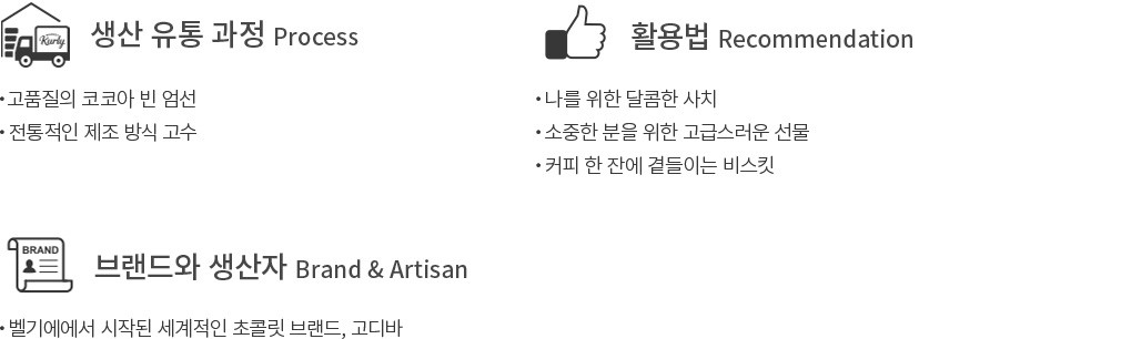 ・특징 : 바닐라 가나슈가 들어 있는 납작한 다크 초콜릿을 바삭한 코코아 비스킷에 얹었어요.