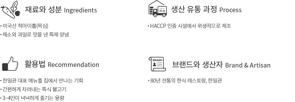 - 대두, 밀, 쇠고기 함유 - 이 제품은 난류,우유,메밀,땅콩,고드어,게,새우,돼지고기,복숭아,토마토,아왕 산류,호두,닭고기,오징어,조개류(굴,전복,홍합 포함)을 사용한 제품과 같은 제조 시설에서 제조하고 있습니다.