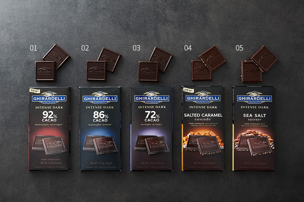 다채롭게 즐기는 다크 기라델리 초콜릿의 쌉싸름한 풍미와 달콤함을 나누세요!
