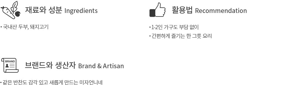 - 대두, 밀, 돼지고기 함유 - 우유, 땅콩, 밀, 난류, 대두, 고등어, 게, 새우, 돼지고기, 복숭아, 토마토, 아황산류, 호두, 닭고기, 쇠고기, 오징어, 조개류를 사용한 제품과 같은 제조시설에서 제조