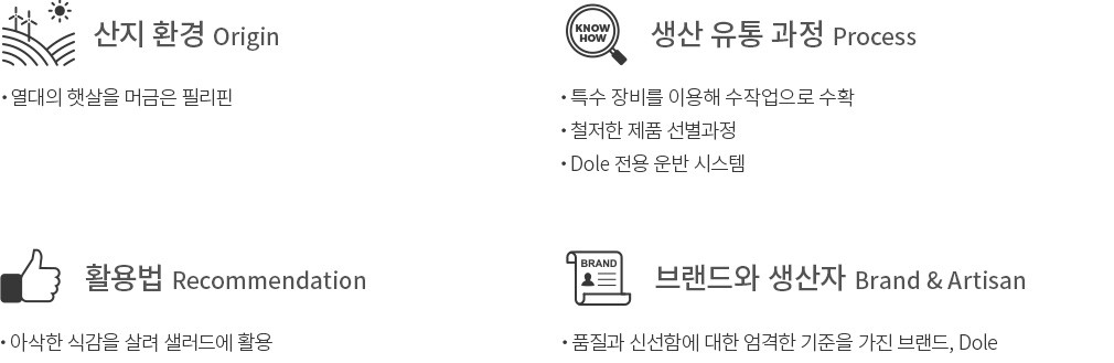 눈여겨보고 다니지 않아도 누구나 한 번쯤은 접했을 법한 브랜드, 바로 DOLE입니다. 흔히 보인다는 것은 누구나 그 품질과 맛을 인정하고 자주 찾는다는 의미와 일맥상통하죠. DOLE이 이렇게 많은 사랑을 받는 이유는 설립자인 제임스 돌(James Dole)이 가진 품질제일주의에 대한 고집 덕분이에요. 고객에게 신선하고 품질 좋은 제품을 전달하겠다는 그의 이념은 DOLE의 체계적인 생산 시스템을 완성하는 바탕이 되었습니다. 업계의 선두주자로 자리매김한 DOLE은 그간 받아온 사랑에 보답하기 위해 다양한 공익 캠페인을 진행하는 등 노력을 기울이고 있습니다.