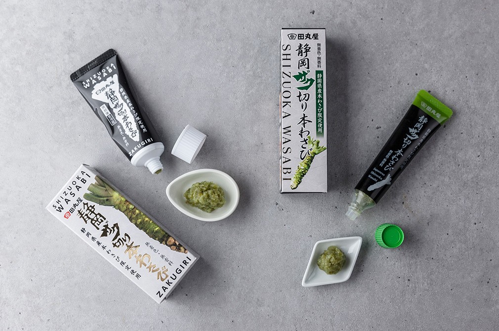 녹차로 유명한 시즈오카현의 또 다른 특산품은 바로 와사비입니다. 그중에서도 사와 와사비는 흐르는 물을 이용해 수경 재배해 품질을 높인 것이랍니다. 비닐하우스나 밭에서 기른 와사비에 비해 깊으면서도 코를 찌르는 풍미가 강해 마니아층의 인기를 얻고 있지요. 타마루야는 이 사와 와사비를 곱게 가는 대신 매우 잘게 어슷썰어 식감과 풍미를 한껏 살린 제품을 만들고 있어요. 간장에 그냥 섞기보다는 그 자체로 요리를 돋보이게 만드는 재료의 역할을 할 수 있기에 훨씬 고급스러운 느낌으로 즐길 수 있을 거예요.