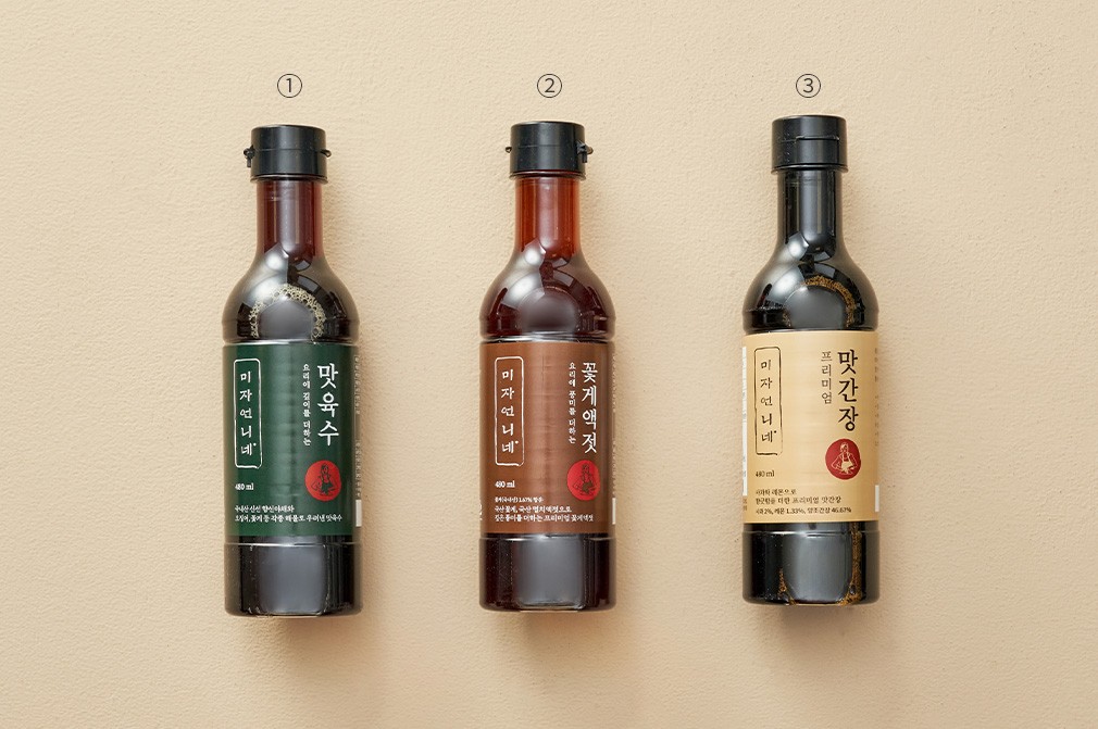 - 맛육수 : 대두, 밀, 게, 새우, 오징어, 조개류(홍합) 함유 (토마토, 쇠고기를 사용한 제품과 같은 제조시설에서 제조) - 꽃게액젓 : 대두, 밀, 새우, 게 함유 (토마토, 오지엉, 조개류(홍합)쇠고기를 사용한 제품과 같은 제조시설에서 제조) - 프리미엄 맛간장 : 대두, 밀, 새우 함유 (토마토, 게, 오징어, 조개류(홍합), 쇠고기를 사용한 제품과 같은 제조시설에서 제조)