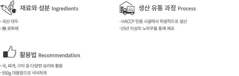 ・원재료 : 대두(국산), 조제해수염화마그네슘, 현미유