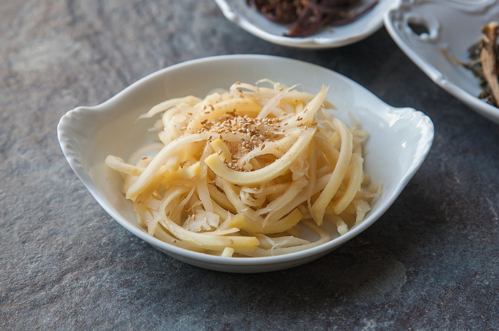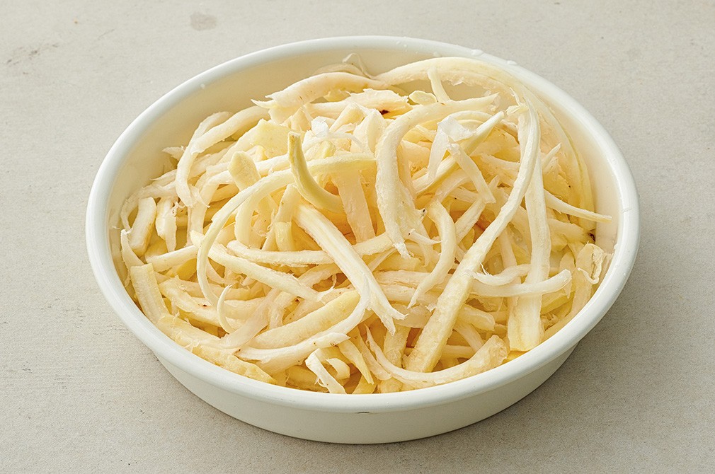 ・특유의 쌉싸름함을 제거하기 위해 소금과 설탕을 섞은 물에 1시간 가량 담가 두세요. 도라지의 양과 상태에 따라 시간을 조절하세요.