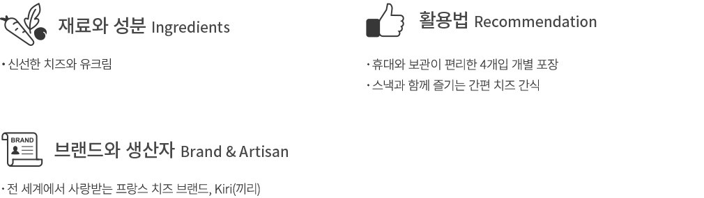 프랑스의 치즈 브랜드, Kiri가 선보이는 색다른 치즈 간식을 만나보세요. 끼리의 치즈는 신맛 없이 깔끔하고 고소한 우유의 풍미로 이미 명성이 자자한데요. 컬리는 스틱과자과 함께 크림치즈를 즐길 수 있는 딥앤크런치 제품을 준비했어요. 깔끔하게 포장된 껍질을 벗겨보면 길쭉한 모양의 과자와 크림치즈가 나뉘어 들어있어요. 크림치즈를 듬뿍 떠먹는 재미 뿐만 아니라, 진한 풍미와 바삭하고 고소한 맛을 동시에 즐길 수 있지요. 한 번에 먹기 좋은 양으로 담았기에 입이 심심한 시간 꺼내어 드시기 좋을 거예요.
