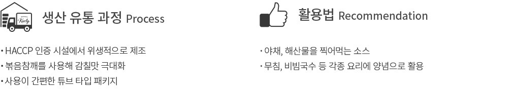 ・특징 : 고추장과 고추양념에 올리고당과 식초 등을 넣어 새콤달콤한 맛이 도드라지는 초고추장입니다.