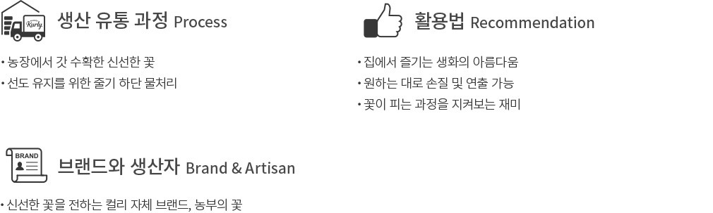 반드시 생수 또는 정수기 물 사용을 권장드립니다.더불어 물의 수위가 높을 경우 줄기가 무를 수 있어 너무 깊지 않은 물에 담가주세요 수령 직후 바로 물에 담가 둘 수 없는 경우, 포장 상태 그대로 어둡고 서늘한 곳에 보관을 권장드립니다. 피지 않은 봉우리로 배송 되는 꽃이며 수령 즉시 물올림 해주시기 바랍니다.