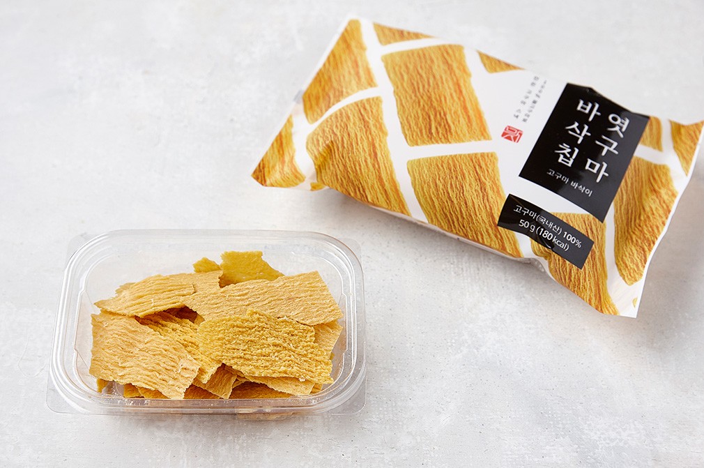 바삭바삭하게 씹히는 동시에 건강한 단맛이 입안 가득 퍼지는 맛꾼푸드의 '엿구마 바삭칩'을 소개합니다. 열을 가해 건조시킨 꿀고구마를 먹기 좋은 크기와 모양으로 가공한 다음, 기름 없이 구워낸 제품이에요. 덕분에 고구마 본연의 맛을 오롯이 느낄 수 있죠. 어떤 첨가물도 넣지 않고 꿀고구마만으로 만들어 안심하고 드실 수 있답니다. 그냥 먹어도 맛있고, 우유와 함께 즐겨도 좋은 '엿구마 바삭칩'으로 심심한 입을 가볍게 달래보세요.