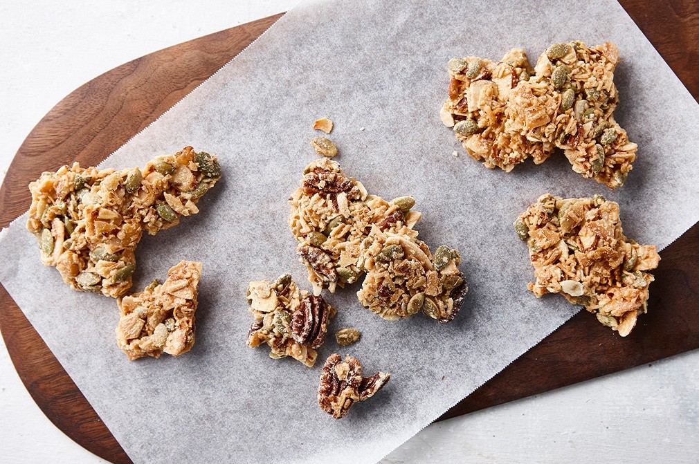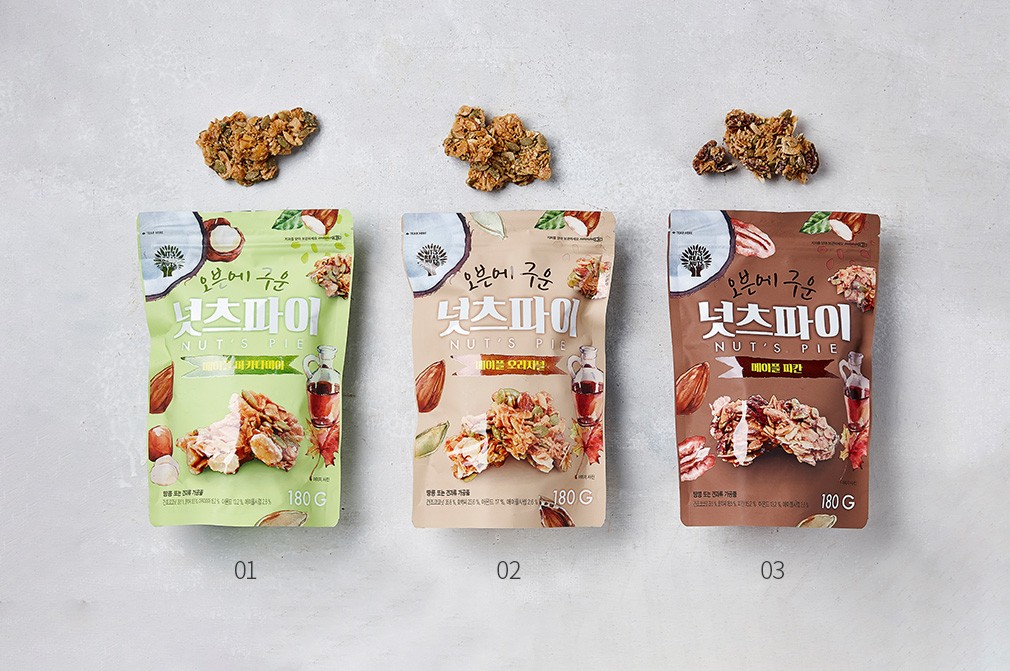 오독오독 고소하게 씹히는 견과류를 더 맛있게 즐기고 싶다면 오븐에 구운 넛츠파이 3종을 만나보세요. 건조 코코넛, 아몬드, 호박씨 등에 유기농 설탕과 메이플 시럽으로 단맛을 낸 다음 조청에 굳혀 한입 크기로 잘라냈어요. 건조 코코넛의 달콤한 향과 씹을수록 달콤해지는 맛이 견과류와 어우러져 계속 손이 가요. 견과류 마니아는 물론 견과류를 좋아하지 않는 분들도 거부감 없이 과자처럼 즐길 수 있을 거예요.