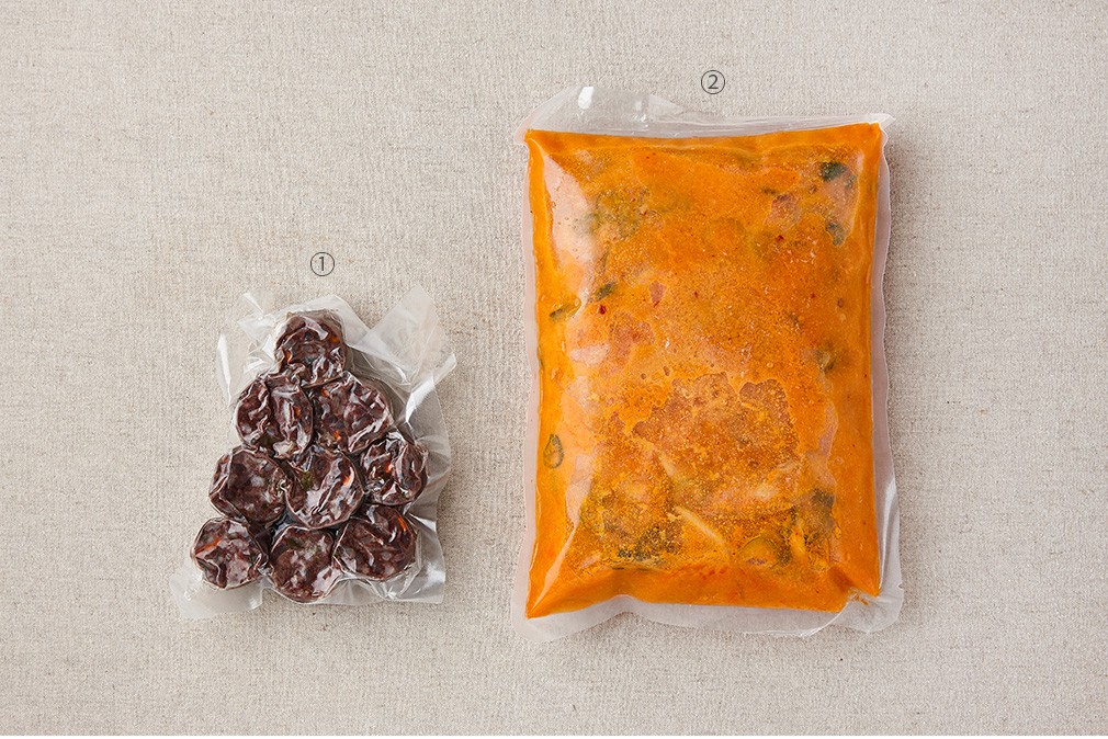 - 돼지고기, 쇠고기, 닭고기, 대두, 밀, 게, 새우, 오징어, 조개류(굴, 홍합 포함) 함유 - 본 제품은 토마토, 알류, 땅콩, 오징어, 고등어, 메일, 잣, 조개류(전복포함), 아황산류를 사용한 제품과 같은 시설에서 제조하고 있습니다.