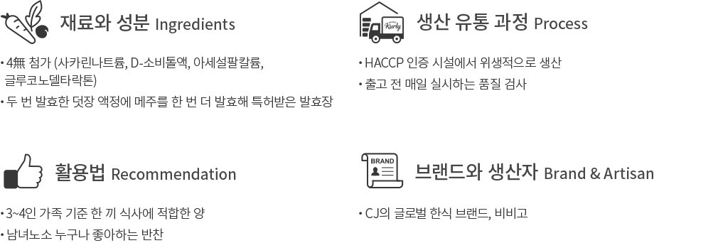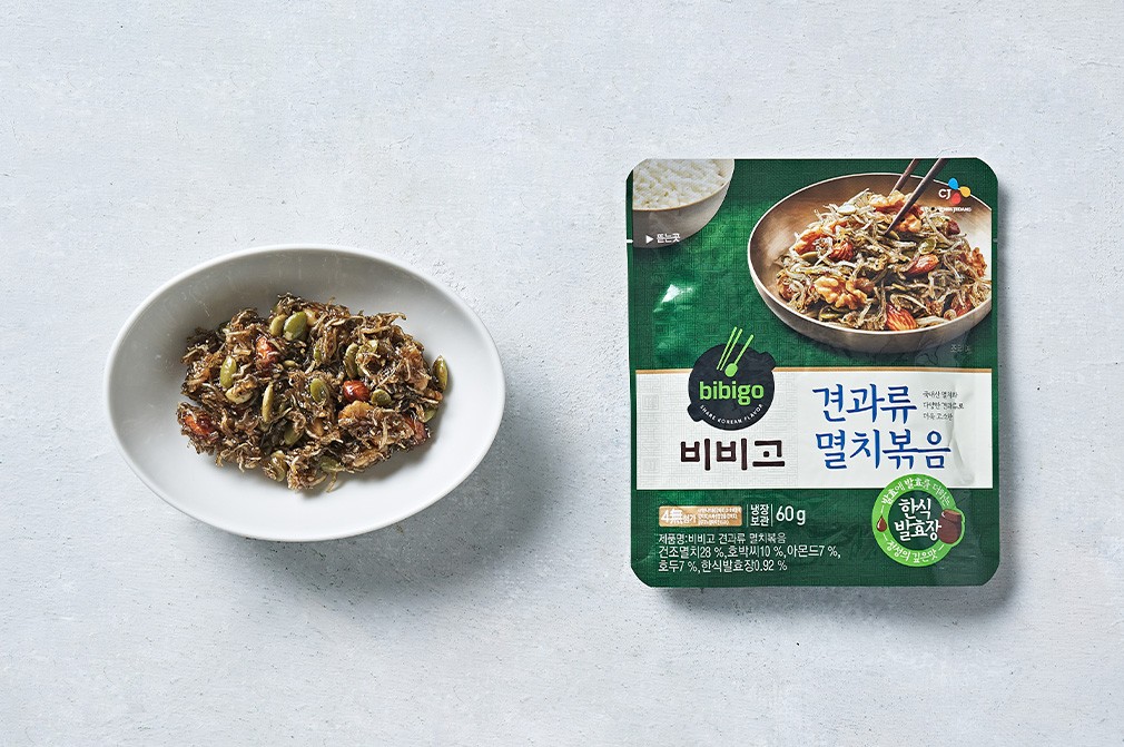 만들기 간편한 듯하지만, 은근히 손이 가는 멸치볶음. 비비고 견과류 멸치볶음이 요리하는 수고로움을 덜어 드릴게요. 비비고는 국내산 멸치에 한식발효장*, 호두와 아몬드 등 견과류를 함께 볶아 짭짤한 멸치볶음에 고소한 맛을 더했어요. 고온의 볶음 솥에서 직접 볶아 아삭한 식감 또한 살아 있답니다. 남녀노소 누구나 즐길 수 있는 맛으로 아이들을 위한 반찬으로도 제격이에요.