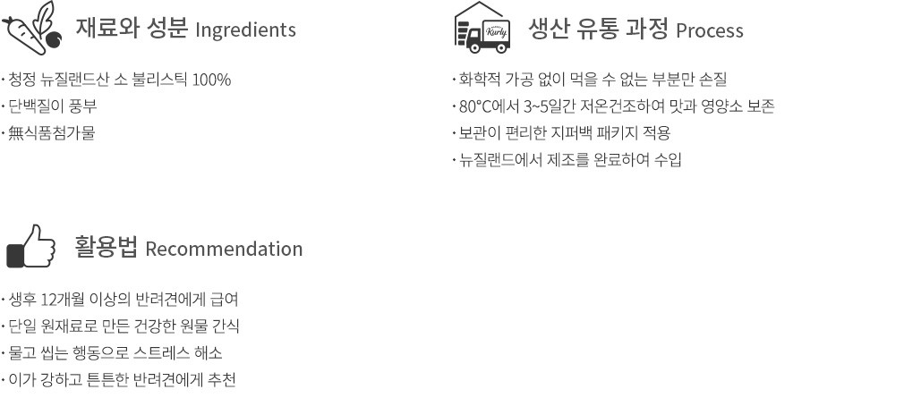 ・원재료 : 소불리스틱(뉴질랜드산) 100%