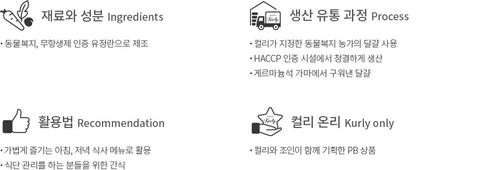 - 계란 함유 - 이 제품은 알레르기 발생 가능성이 있는 알류(메추리알), 우유, 메밀, 땅콩, 대두, 밀, 고등어, 게, 새우, 돼지고기, 복숭아, 토마토, 아황산류, 호두, 닭고기, 쇠고기, 오징어, 조개류(굴, 전복, 홍합 포함), 잣을 사용한 제품과 같은 제조 시설에서 제조하고 있습니다.