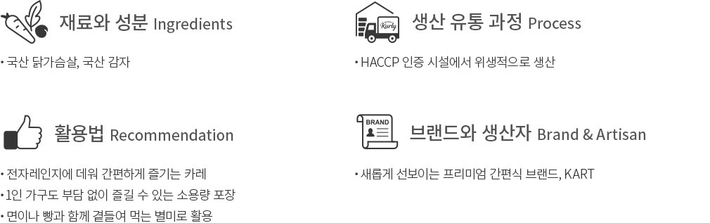 - 계란, 우유, 대두, 밀, 돼지고기, 토마토, 닭고기, 쇠고기, 조개류(바지락, 모시조개) 함유 - 이 제품은 메밀, 땅콩, 고등어, 게, 새우, 복숭아, 아황산류, 호두, 오징어, 조개류(굴, 전복, 홍합포함)를 사용한 제품과 같은 제조시설에서 제조