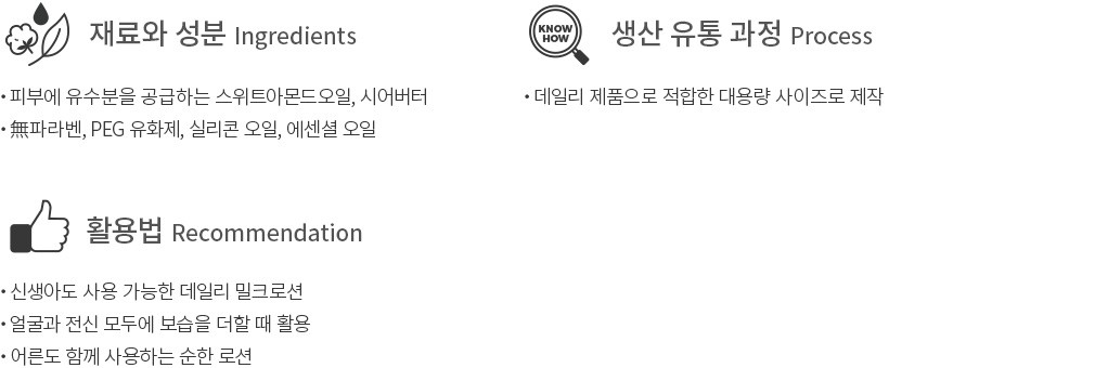 ・사용법 : 세안 또는 샤워 후 물기를 닦고, 적당량을 덜어 얼굴과 전신에 발라 흡수시키세요.