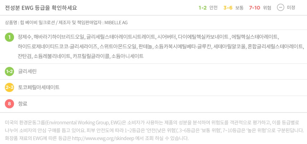 컬리는 EWG로부터 보통, 위험 등급을 받은 성분이라 하더라도 숨기지 않고 정직하게 공개합니다. 더불어 우려되는 성분에 대한 정보를 함께 제공해 드리오니 구입 전 반드시 확인해 주세요.