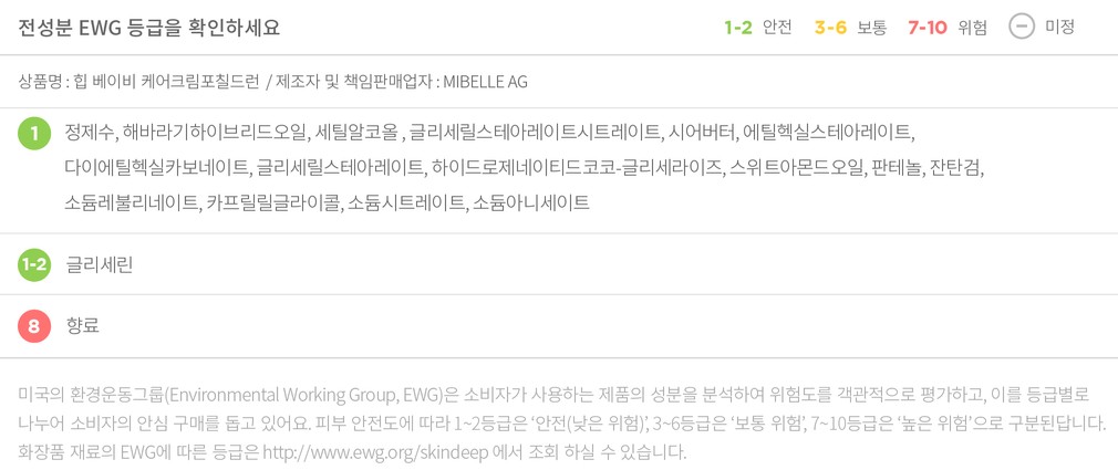 컬리는 EWG로부터 보통, 위험 등급을 받은 성분이라 하더라도 숨기지 않고 정직하게 공개합니다. 더불어 우려되는 성분에 대한 정보를 함께 제공해 드리오니 구입 전 반드시 확인해 주세요.
