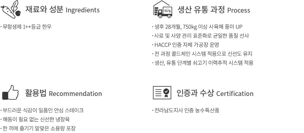 정육 상품의 특성상 3% 내외의 중량 차이가 발생할 수 있습니다. 상품 수령 후 최대한 빠른 시일내에 섭취를 권장드립니다. / 비닐포장 등에 의해 산소가 공급되지않아 간혹 검붉게 변하는 현상이 발생할 수 있으나, 산소와 접촉하면 선홍색으로 돌아오는 점 안내드립니다.