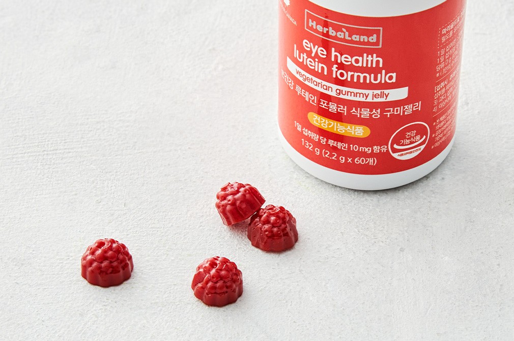 맑고 선명한 눈관리를 위해 꾸준한 기능 성분 섭취가 필요해요. 허벌랜드의 루테인 포뮬러 식물성 구미젤리를 만나보세요. 마리골드 꽃에서 추출된 성분인 루테인을 함유하고 있는데요. 루테인은 체내에서 합성되지 않으므로, 건강기능식품 등을 통한 섭취가 필요한 성분이랍니다. 식물성 부원료로 만든 식물성 구미젤리에 담아 만든 식물성 건강기능식품이니, 1일 1회 2개씩 씹어 섭취해 주세요.